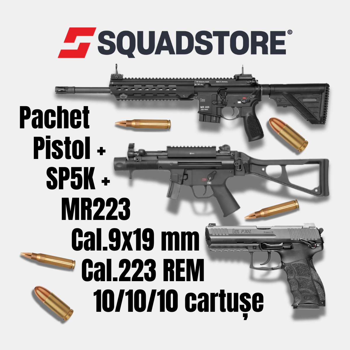 Pachet Pistol+HK SP5K+HK MR223 calibru 9×19/9×19/223 REM + 10/10/10 cartuse/persoana Cod 104